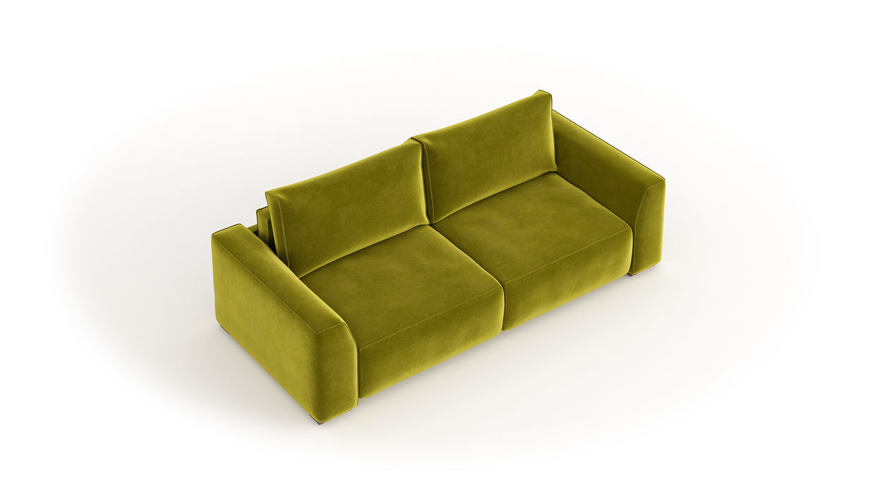 Для этой модели мы можем рекомендовать обивочные ткани из всей палитры вариантов и поставщиков PRODIVANI. Особенно хорошо диван смотрится в ворсовых тканях: велюрах, флоках.